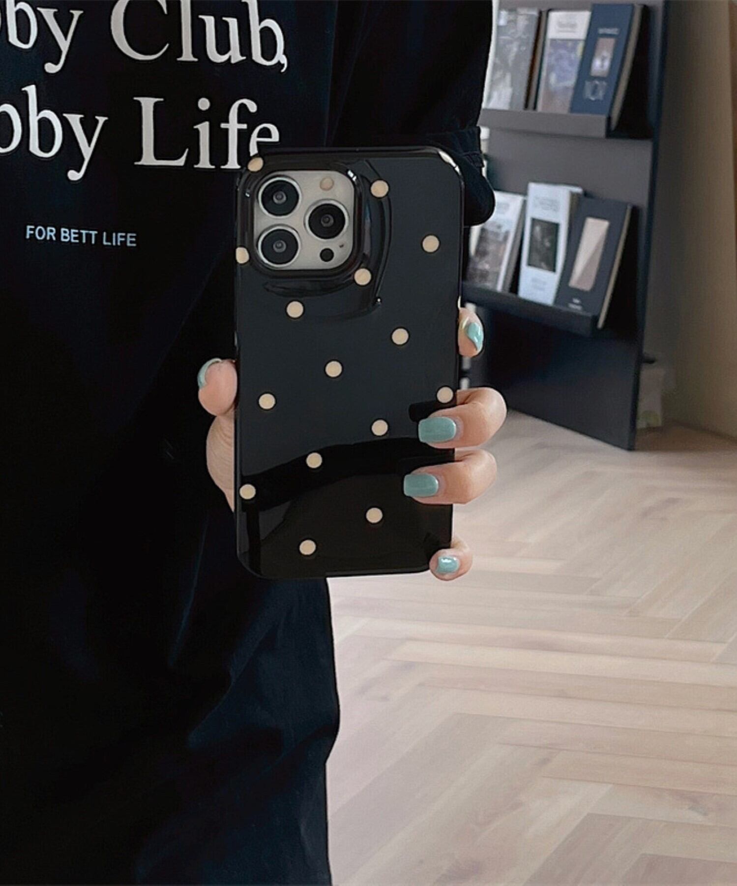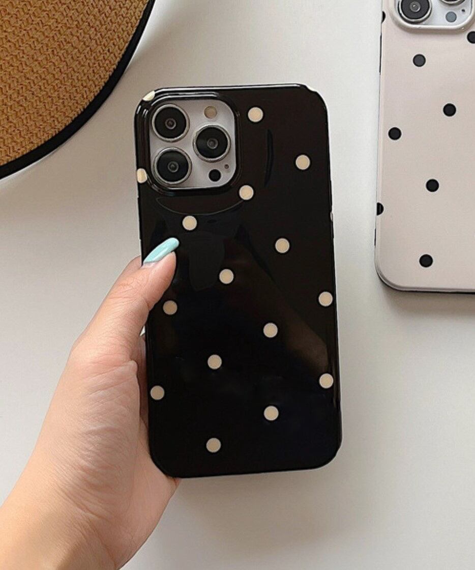 シンプルでありながら、洗練された印象を与えるドット柄のスマホケースです。