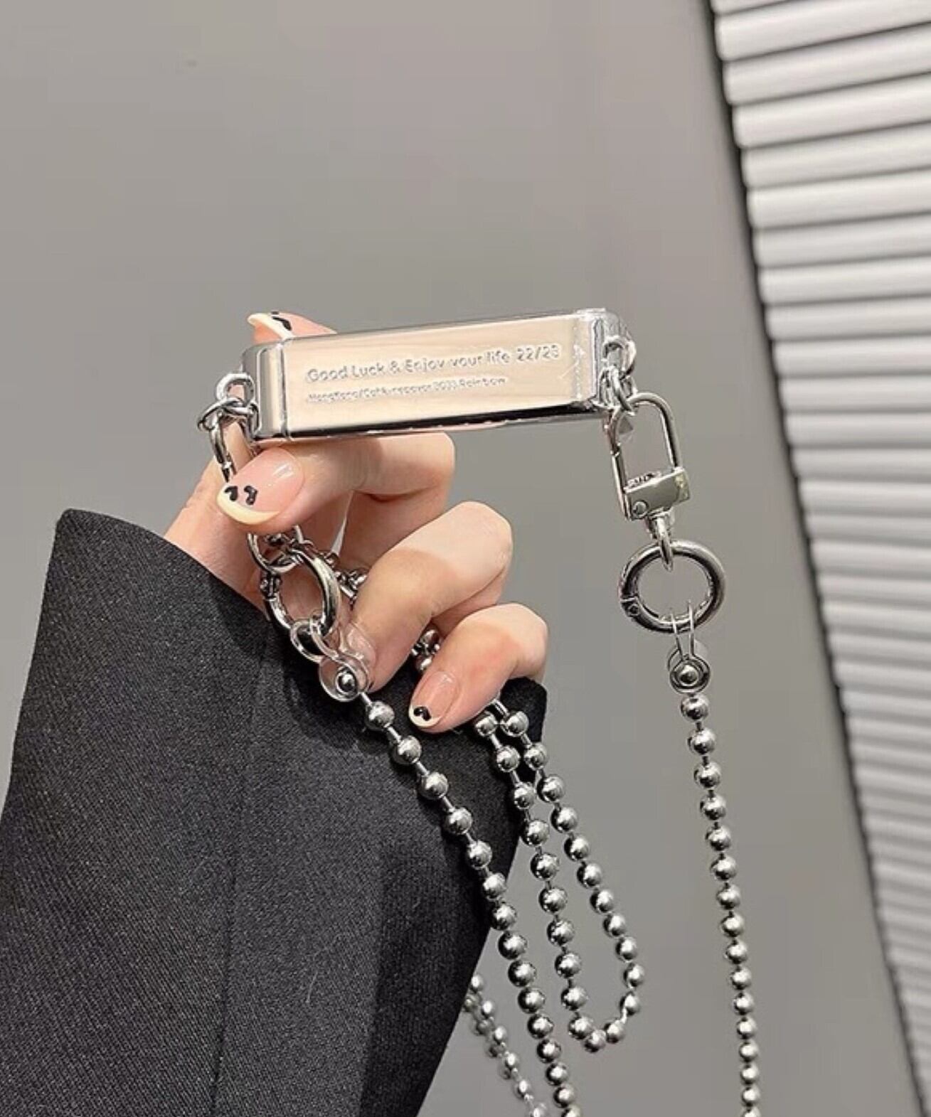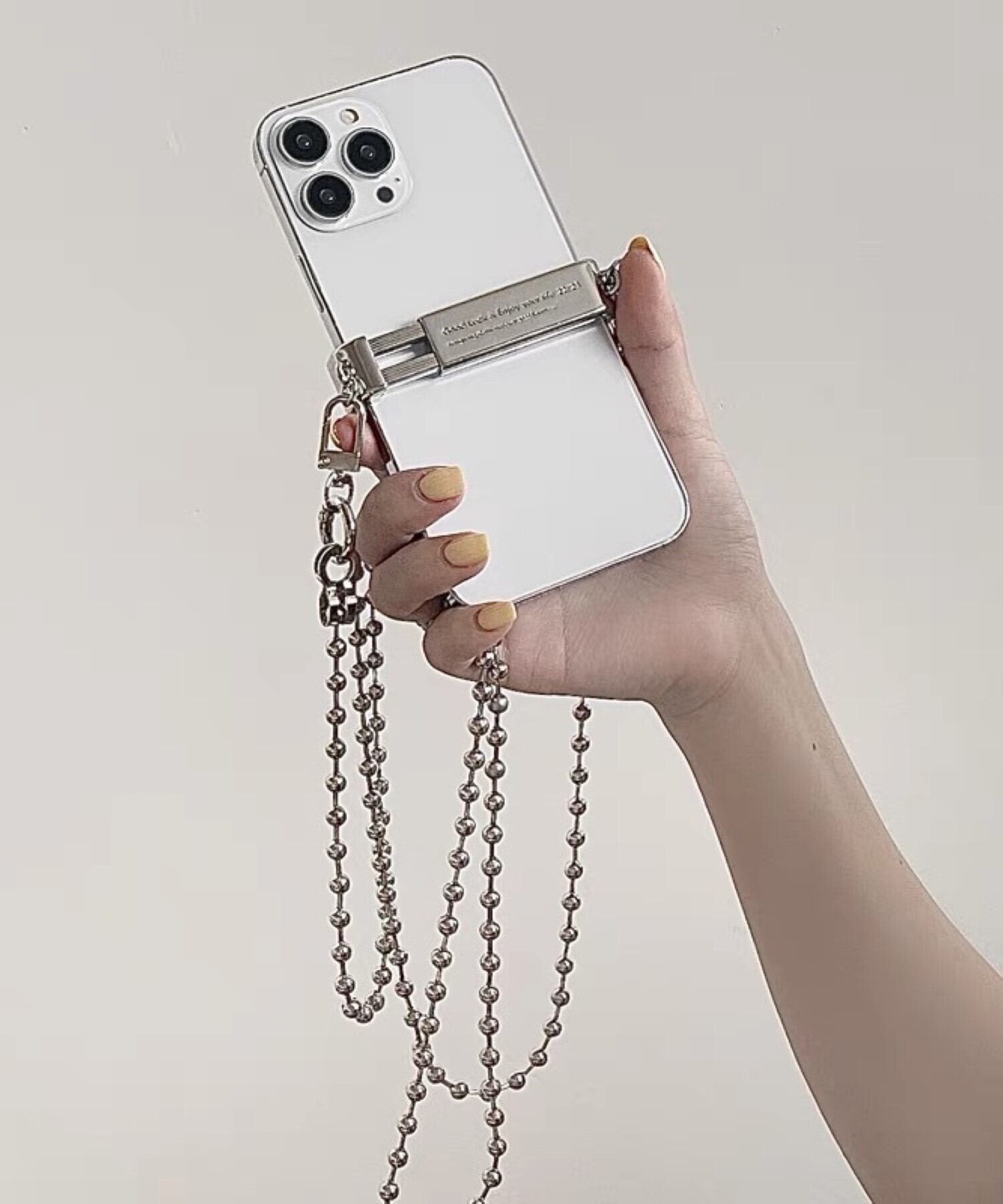 お手持ちのスマートフォンに装着するだけで、チェーンストラップ付きのスマートフォンにできちゃうアイテムです♪