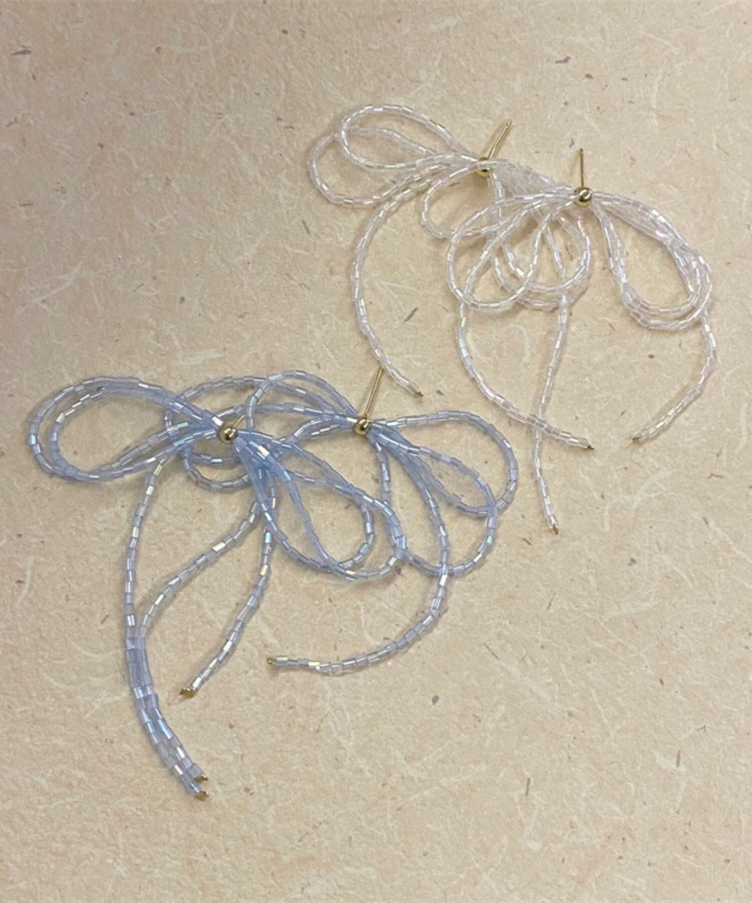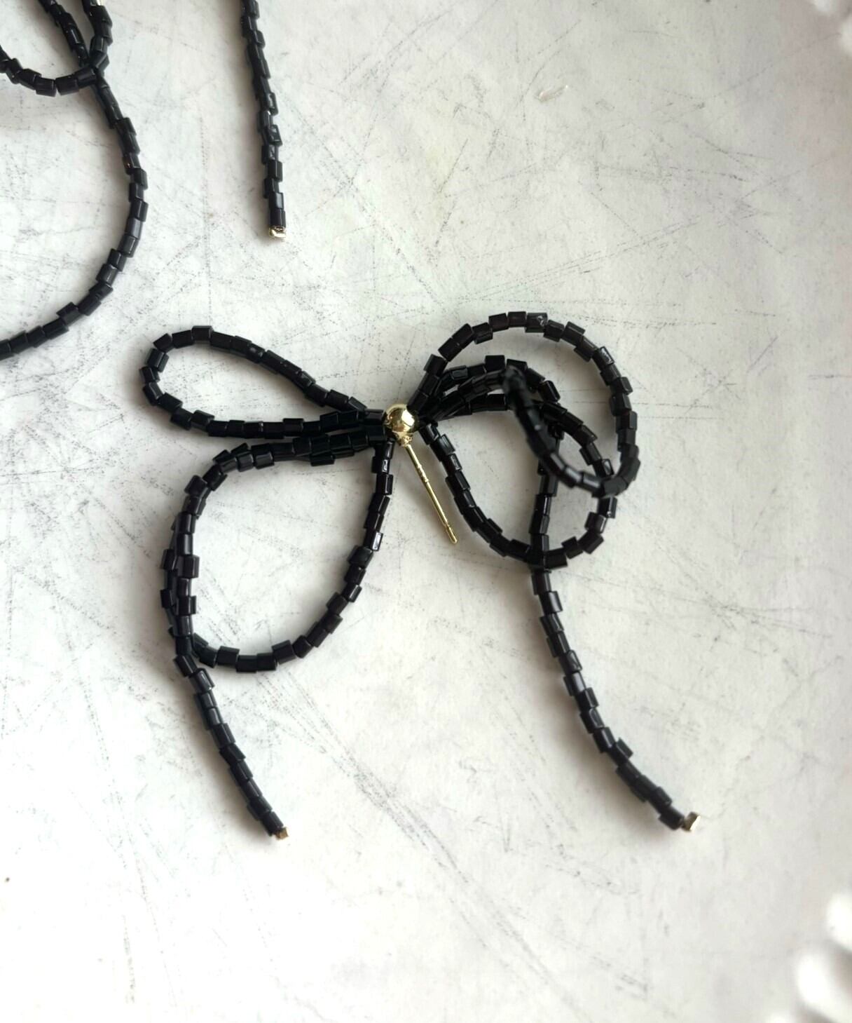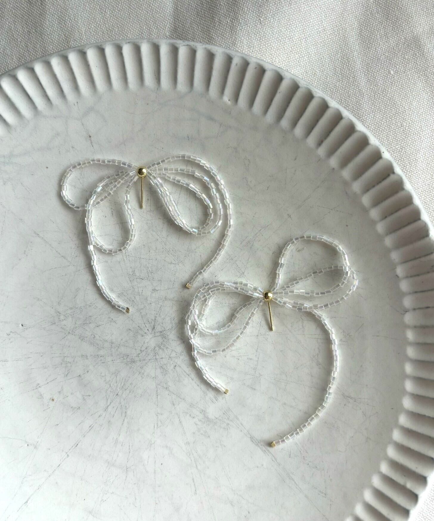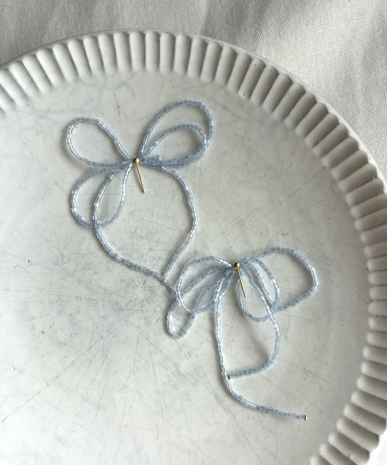 トレンドのリボンモチーフを、ガラスビーズを重ねて作りました。