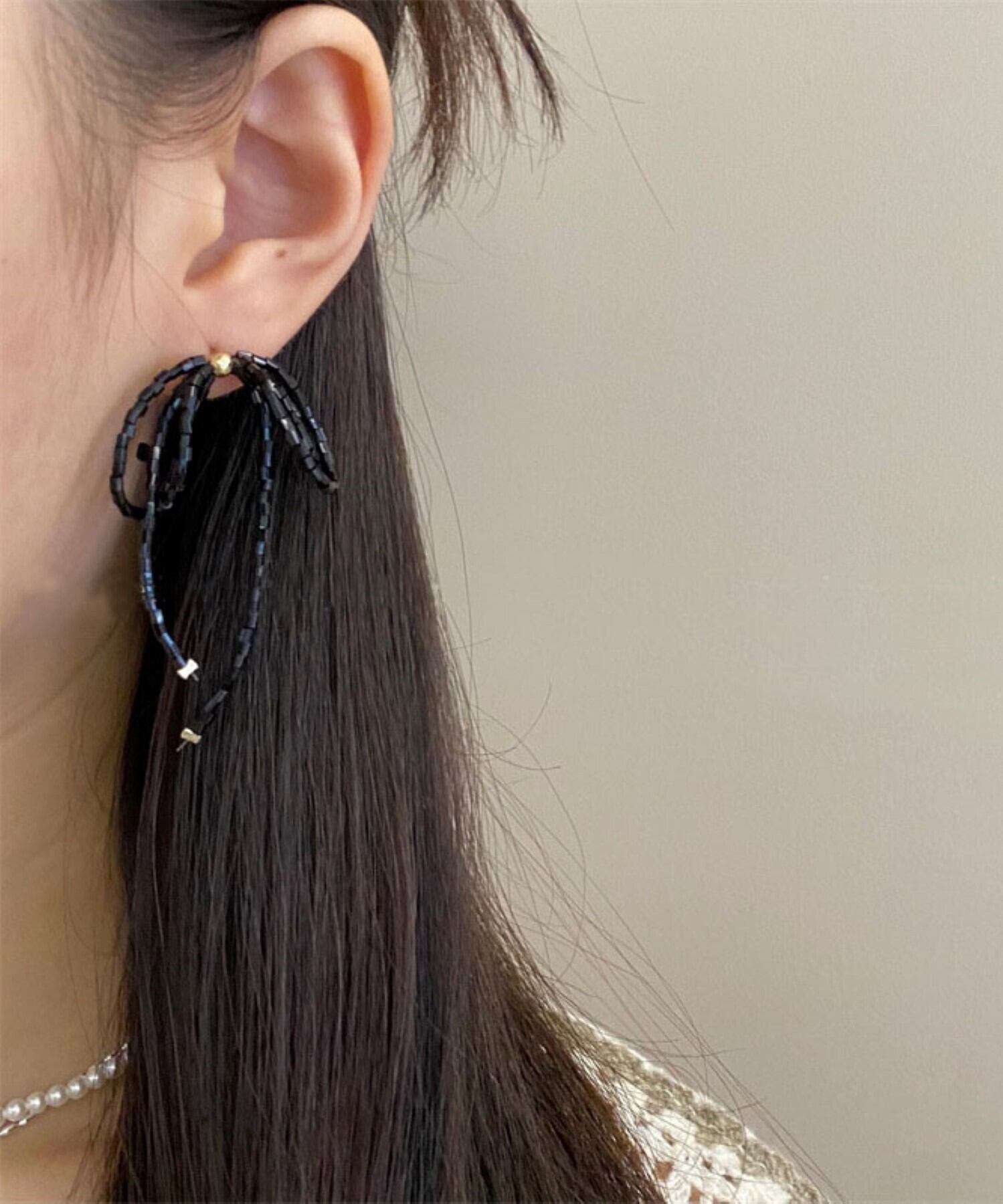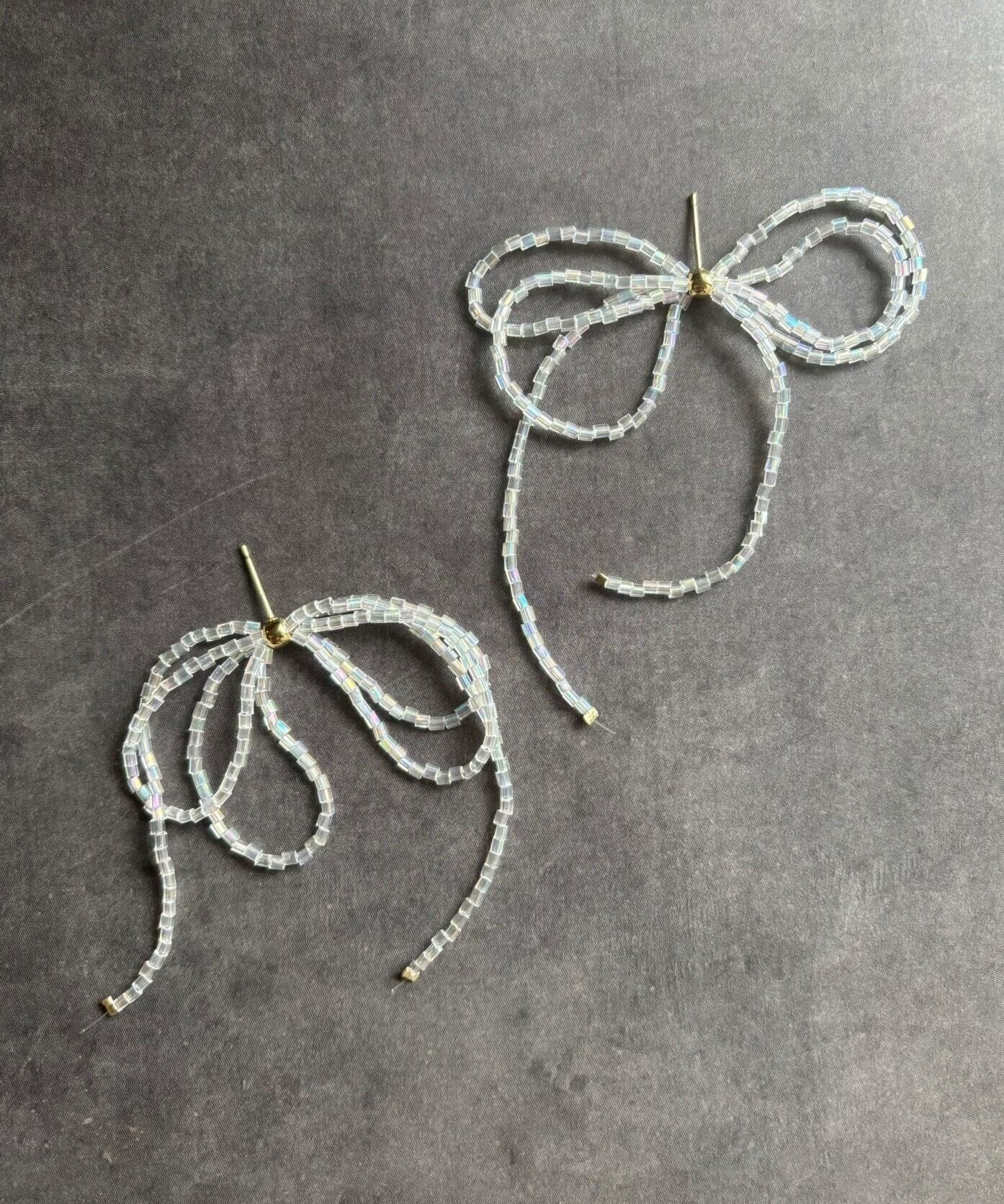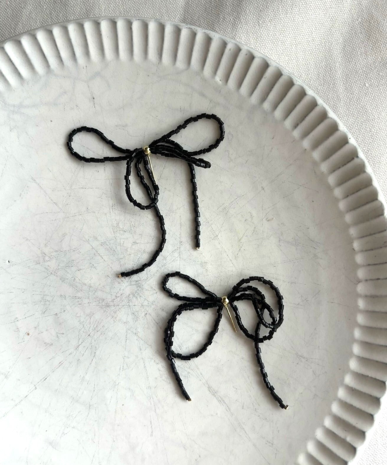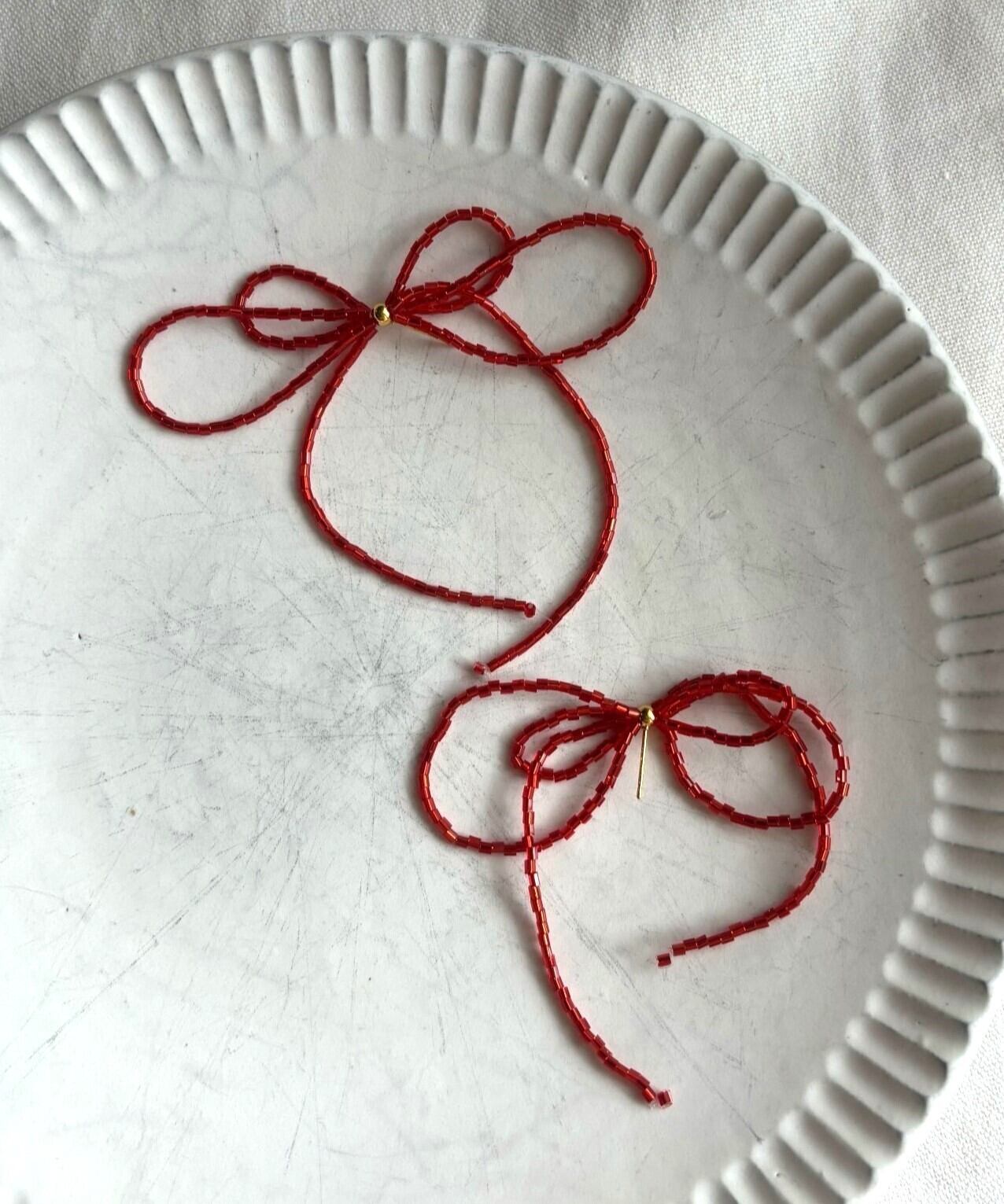 トレンドのリボンモチーフを、ガラスビーズを重ねて作りました。