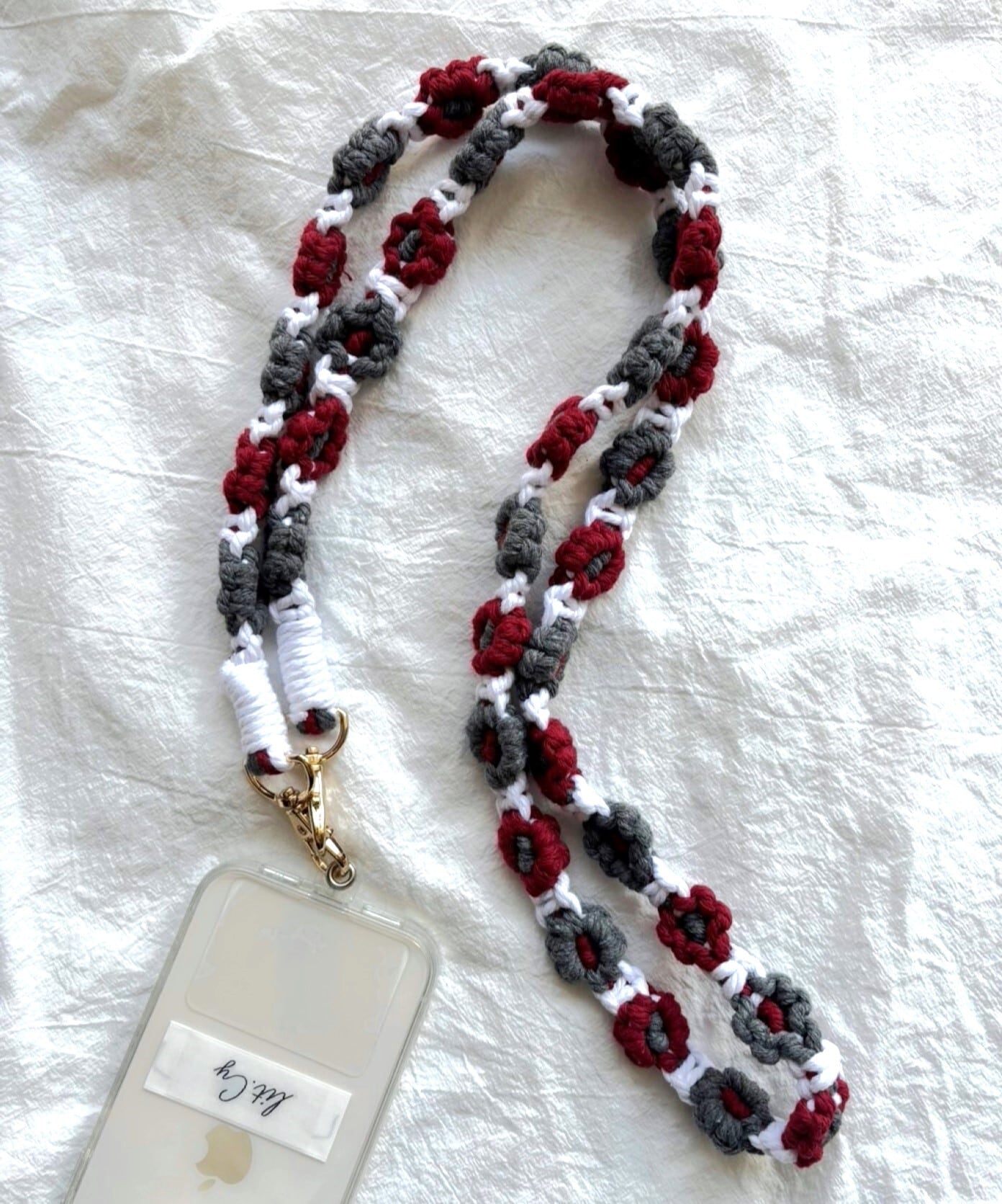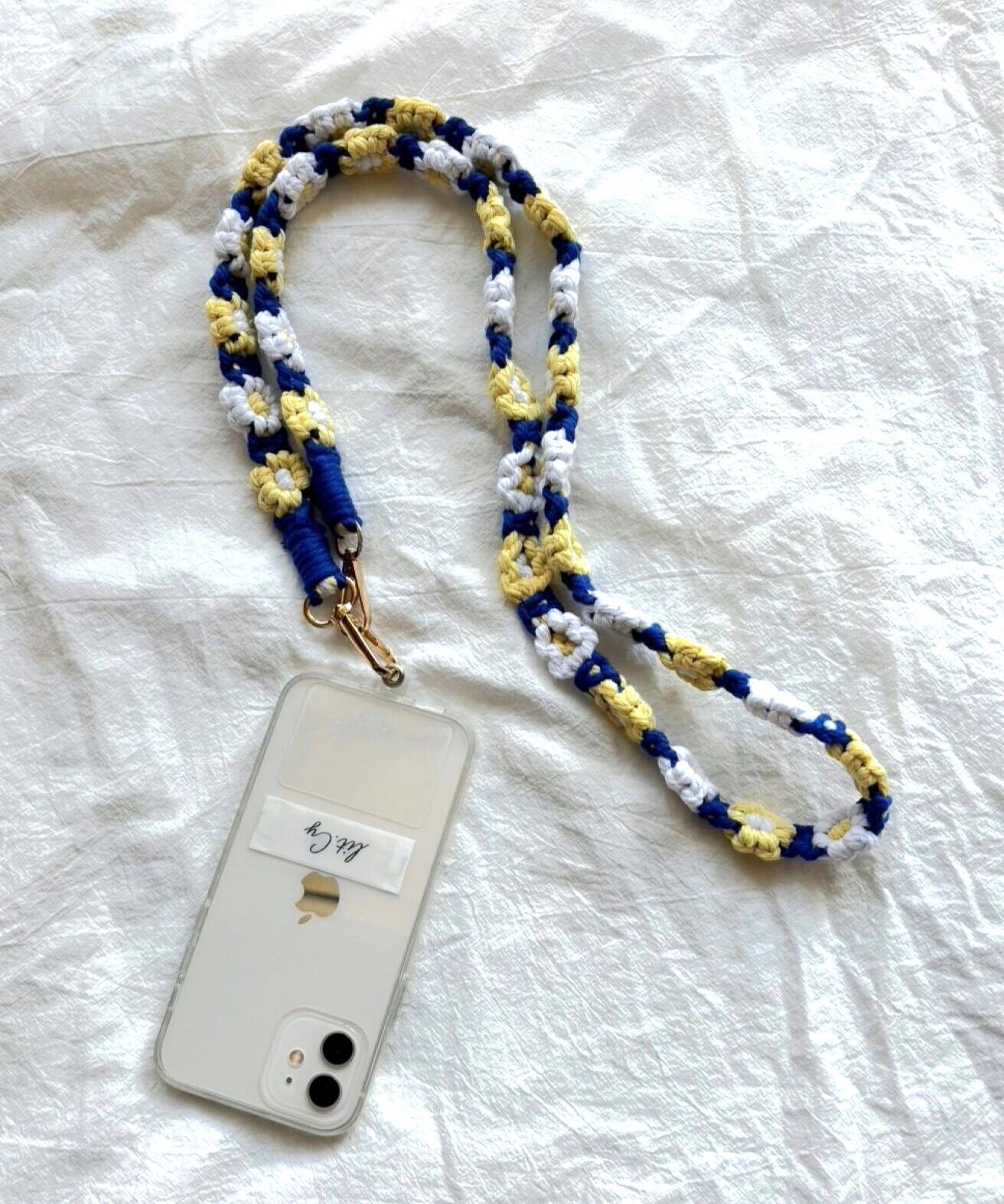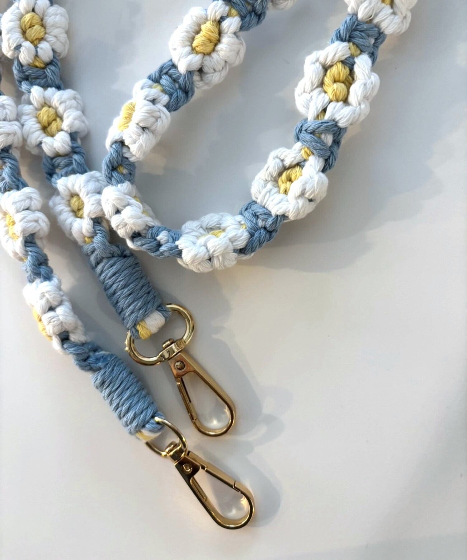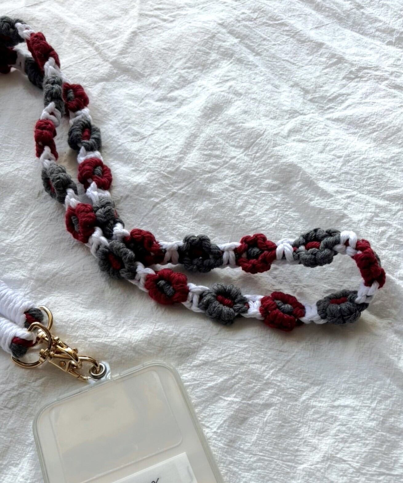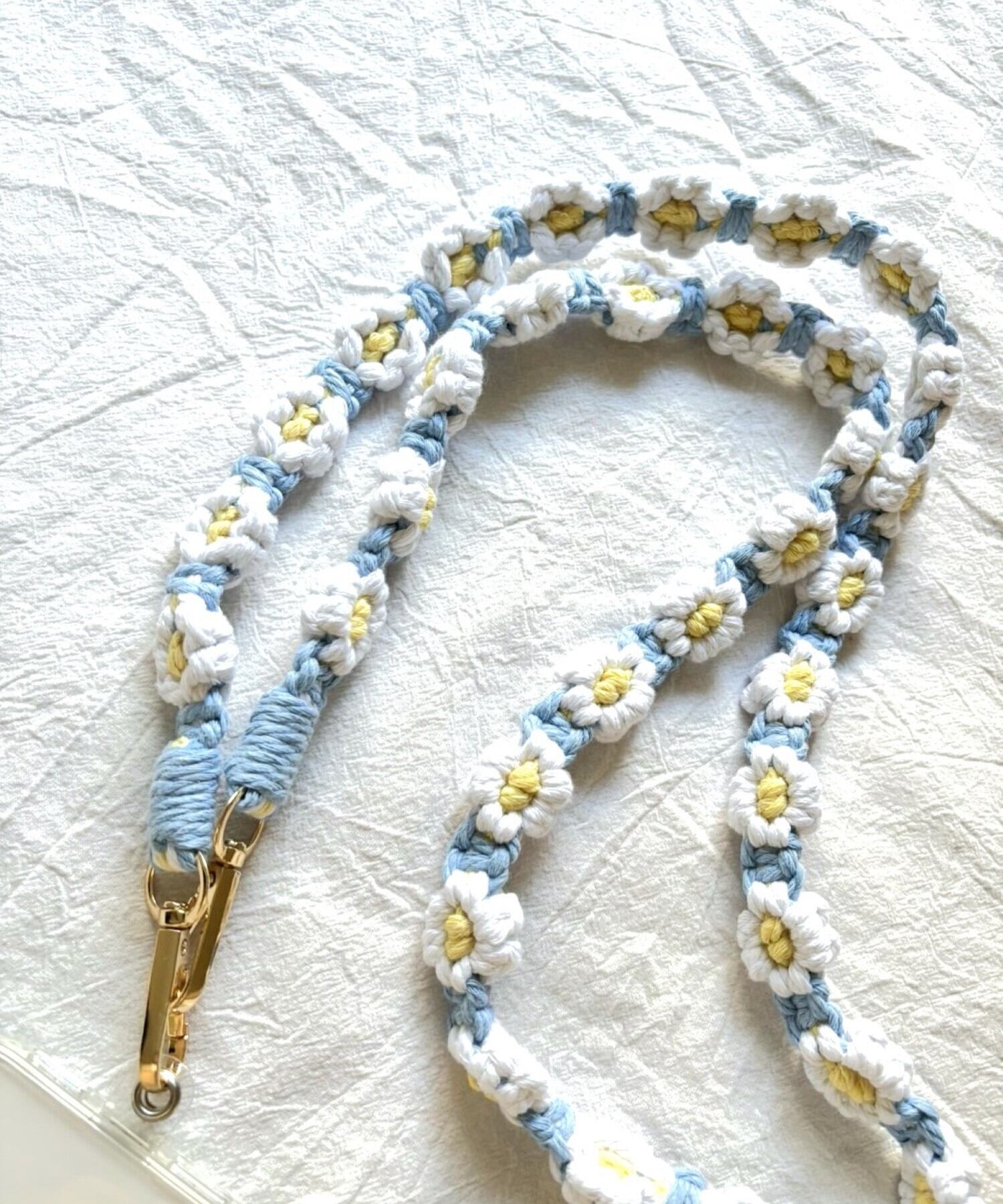 お花の マクラメ モチーフ編みがかわいいスマートフォン用ショルダーストラップ。