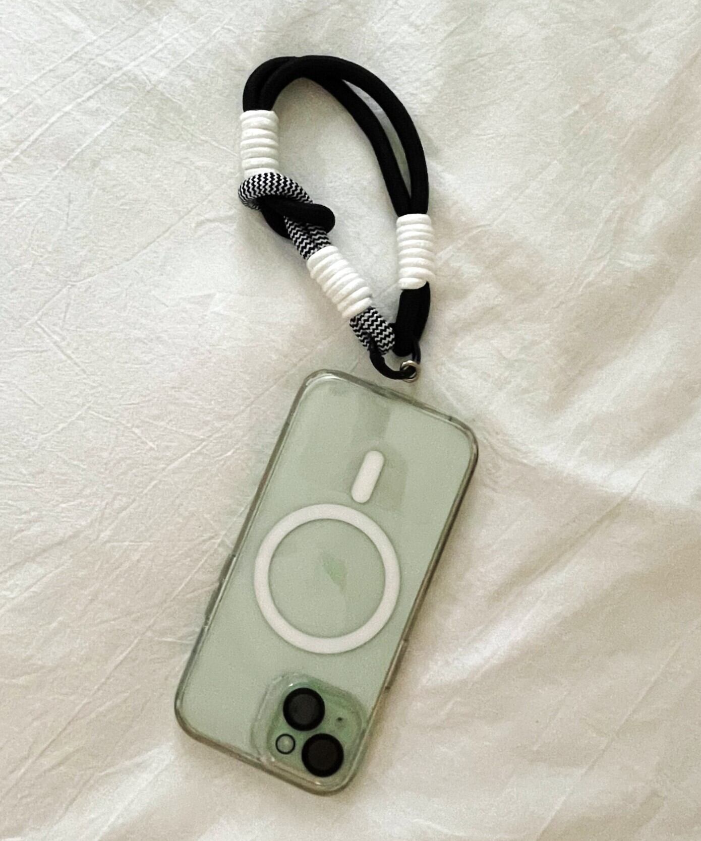 挟み込みのスマホタグつきなので、専用のケースやパーツを追加で購入する必要もありません。ストラップは取り外し可能です。