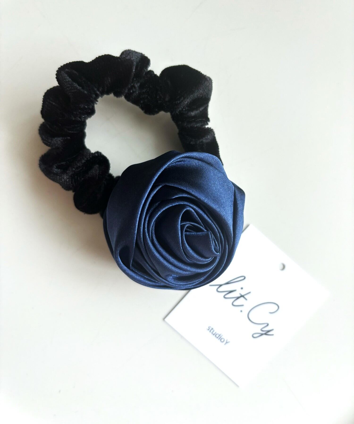 LC2402059 ローズ モチーフ シュシュ ヘアゴム サテン フラワー