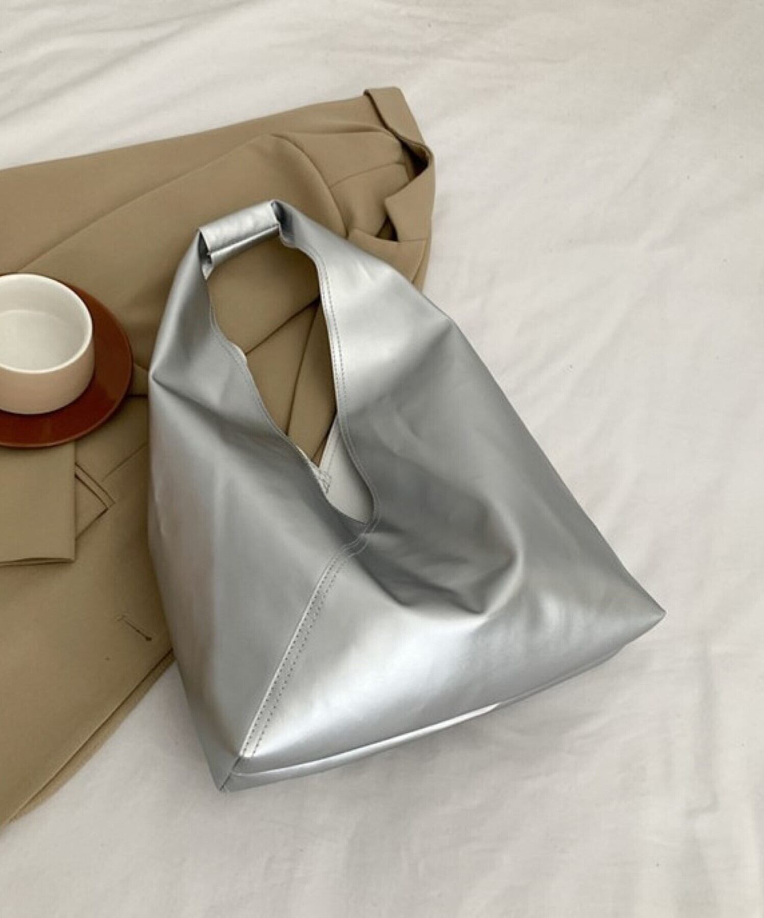 LC23237 メタリックトライアングルトートバッグ