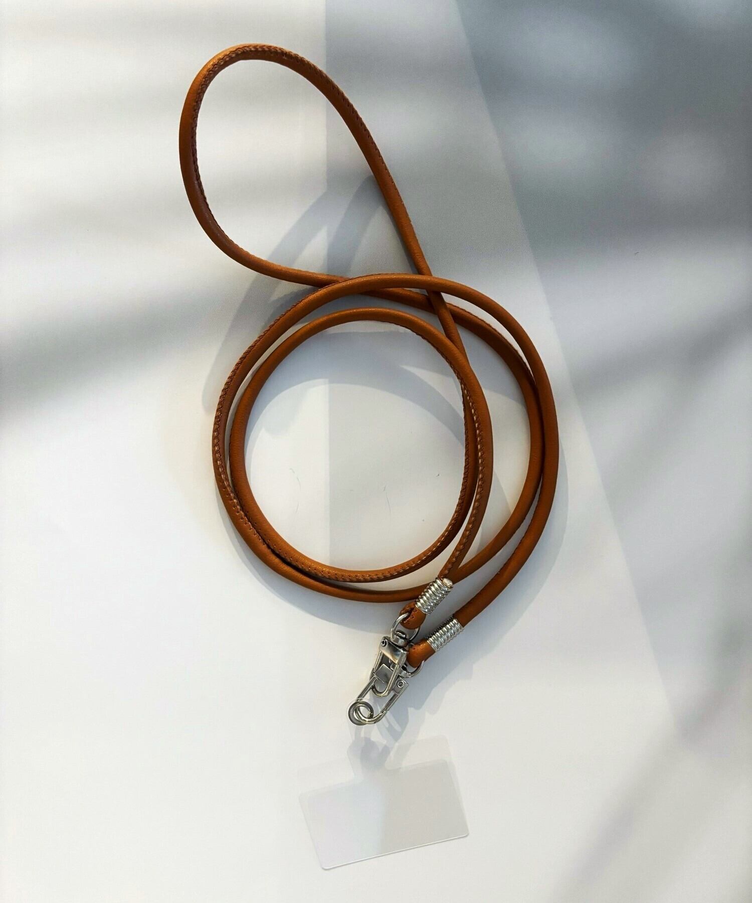 まるで本物のレザーのような高級感ある合成皮革を使用した、スタイリッシュな携帯用ショルダーストラップ。