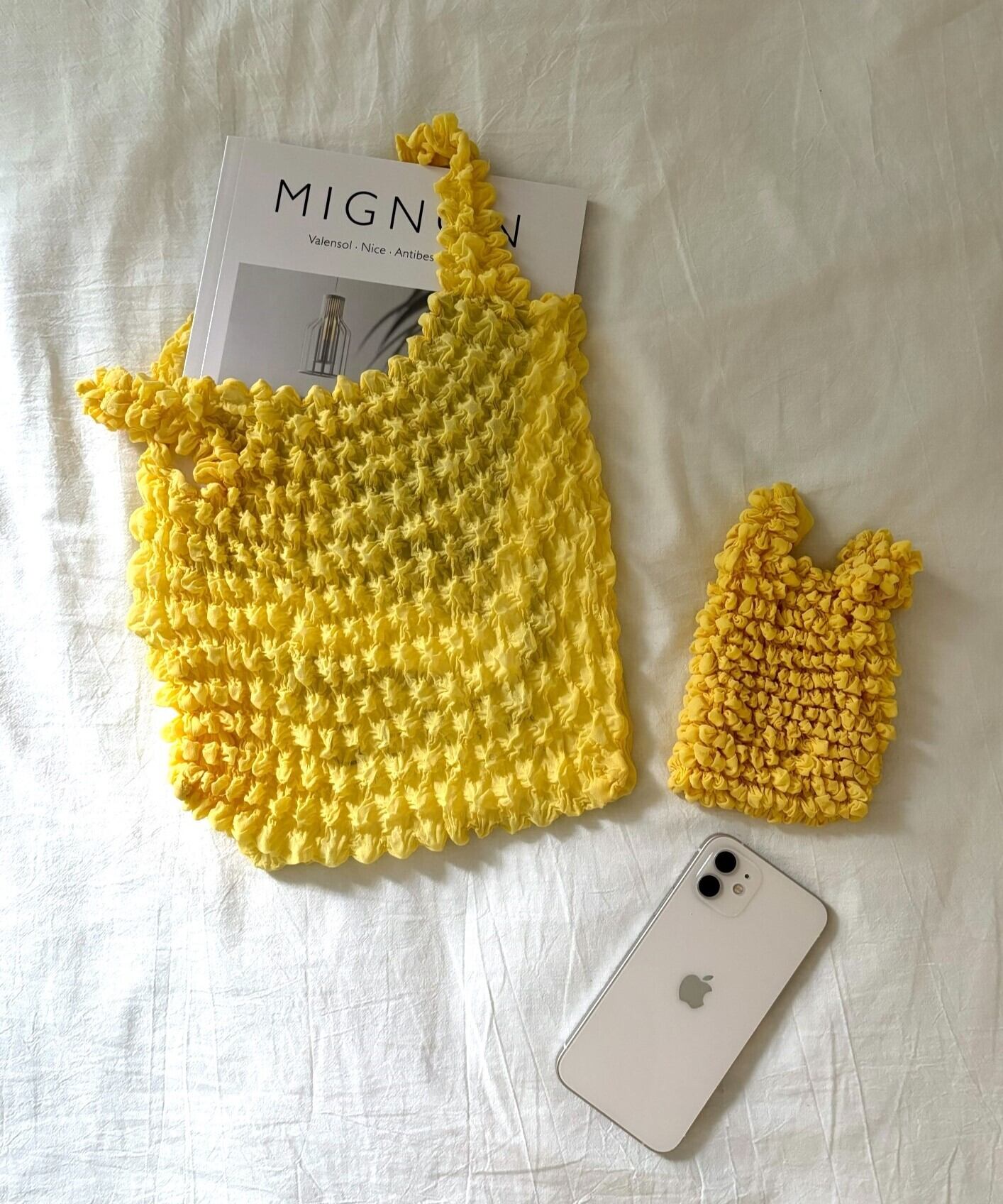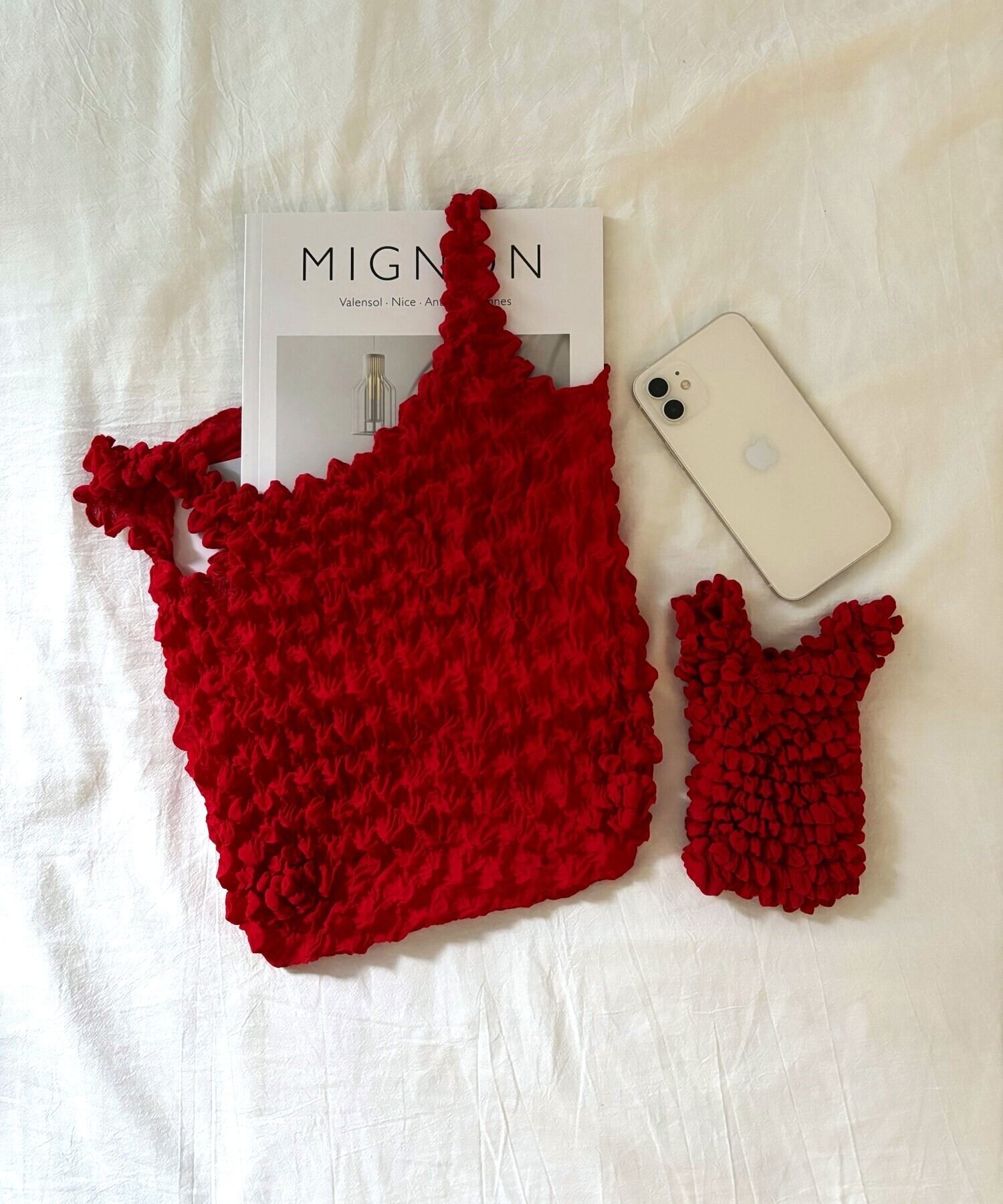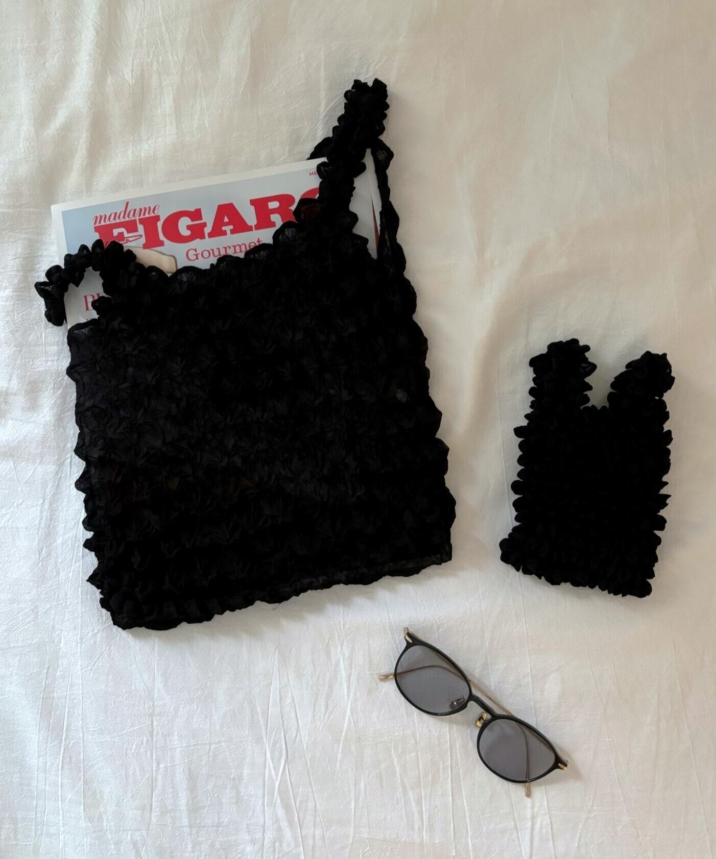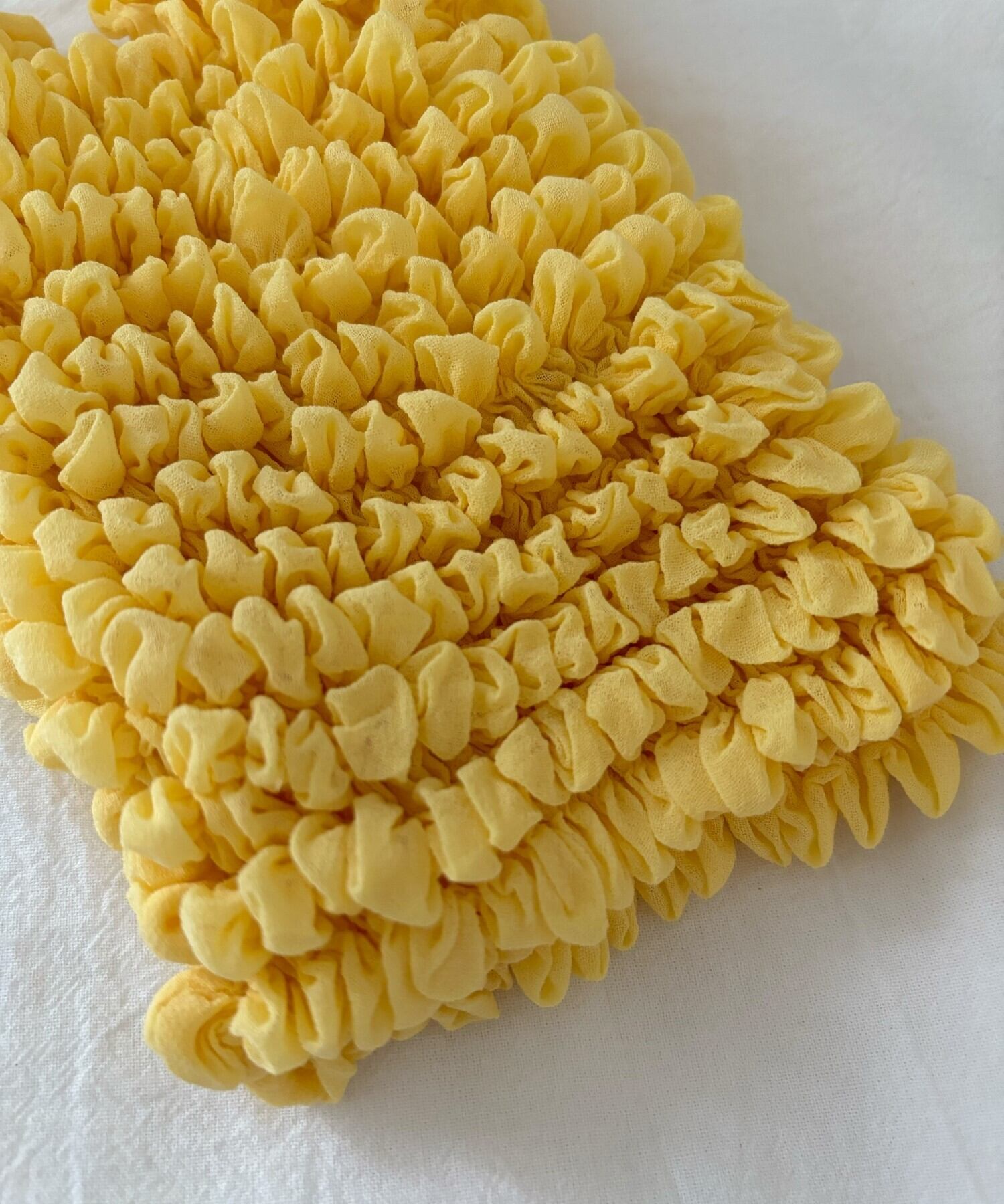 ポコポコの絞りシャーリング素材がかわいいだけでなく、伸縮性抜群!