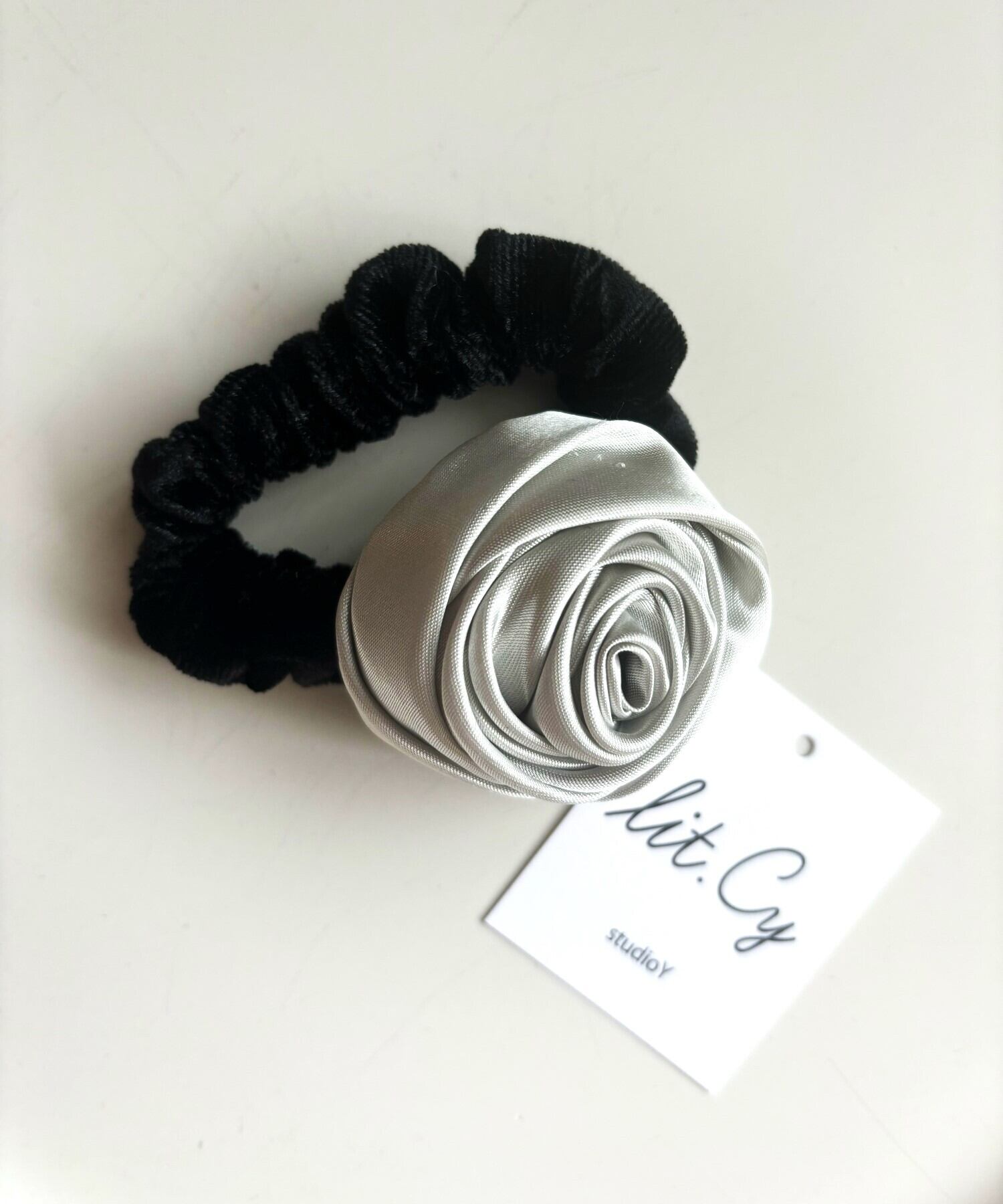 LC2402059 ローズ モチーフ シュシュ ヘアゴム サテン フラワー【グレー】