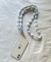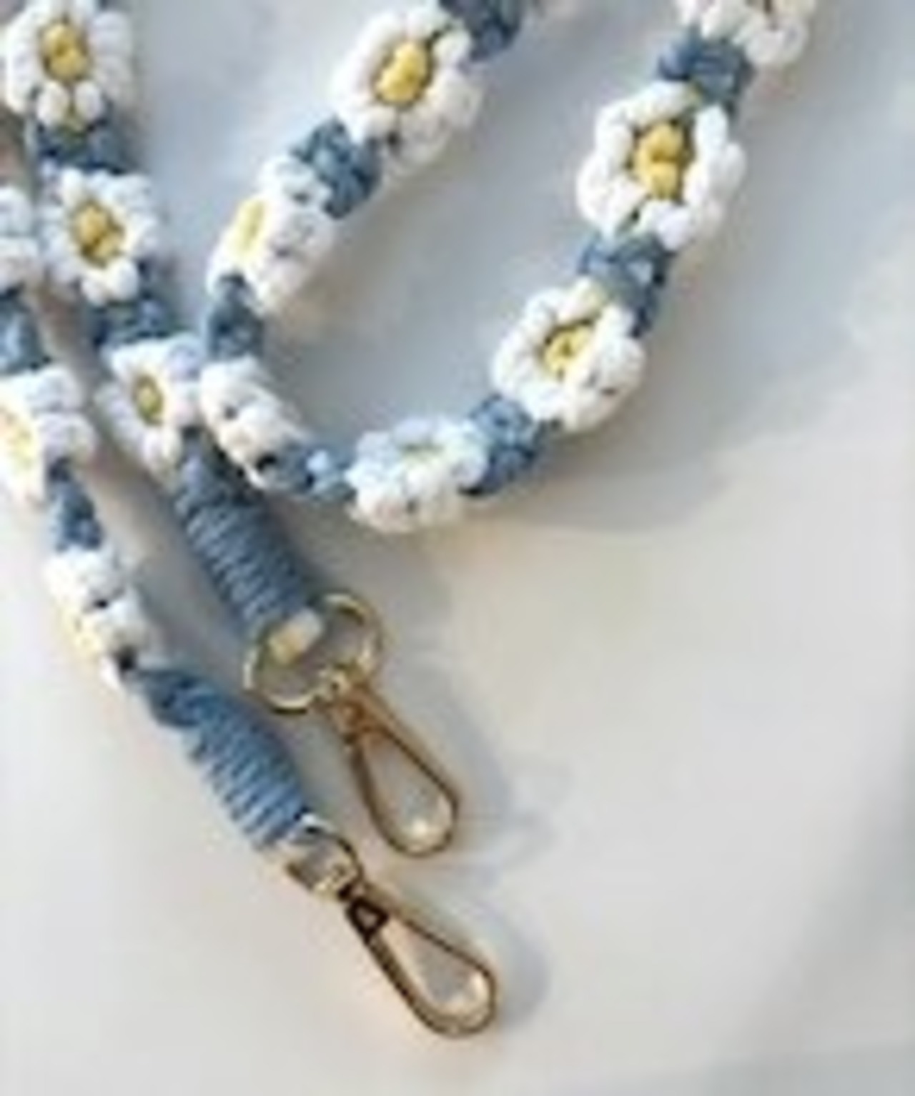 お花の マクラメ モチーフ編みがかわいいスマートフォン用ショルダーストラップ。